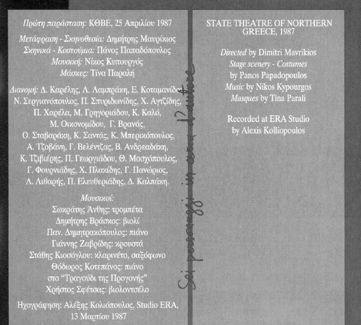Σκηνοθ. Δημήτρης Μαυρίκιος, ΚΘΒΕ, 1987