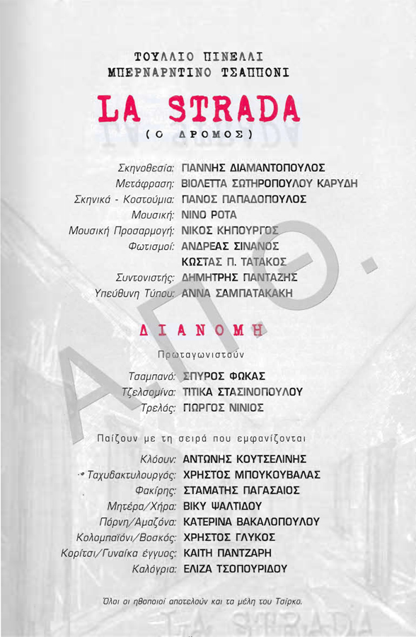 Σκηνοθ. Γιάννης Διαμαντόπουλος, Δημοτικό Θέατρο Βόλου, 2001 Ενορχήστρωση – προσαρμογή της μουσικής του Nino Rota