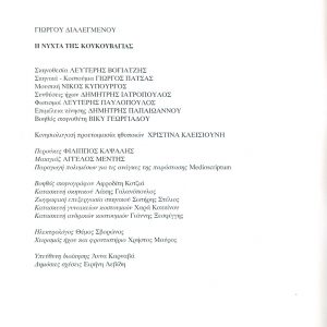 Dir. L. Vogiaztis, Nea Skini, 1998 https://nikoskypourgos.com/wp-content/uploads/2020/05/36.H-NYXTA-THS-KOYKOYVAGIAS-Η-νύχτα-της-κουκουβάγιας-10.mp3