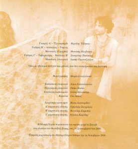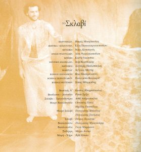 Dir. T. Moschopoulos, Mikri Porta Theatre, 2000 https://nikoskypourgos.com/wp-content/uploads/2020/05/44.TO-SKLAVI-Nανούρισμα.mp3