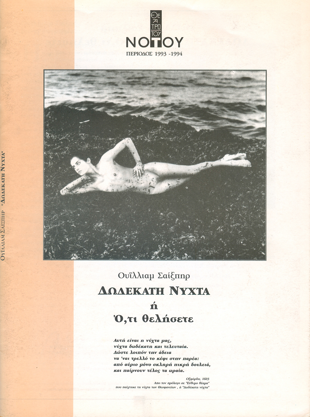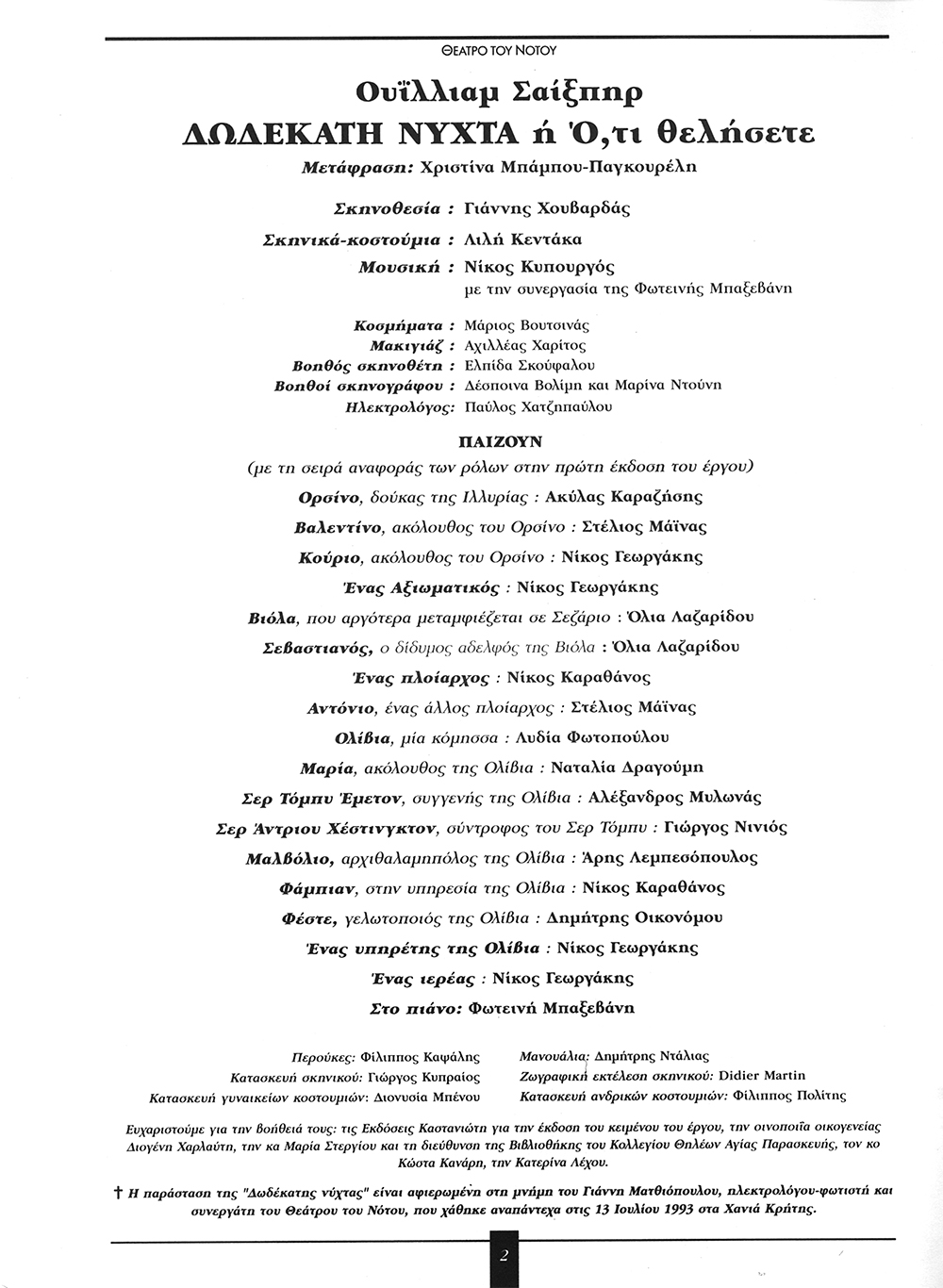 Dir. G. Chouvardas, Theatre of the South, 1993 Όταν ήμουνα παιδί μικρό Η παρούσα ηχογράφηση από συναυλία στο θέατρο Αλίκη, 20/01/1997 Τάσης Χριστογιαννόπουλος, Ορχήστρα των Χρωμάτων, Διεύθυνση: Μίλτος Λογιάδης https://nikoskypourgos.com/wp-content/uploads/2020/04/21.DWDEKATH-NYXTA-B-Όταν-ήμουνα-παιδί-μικρό-1997120-Τάσης-Θ.Αλίκη.mp3