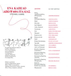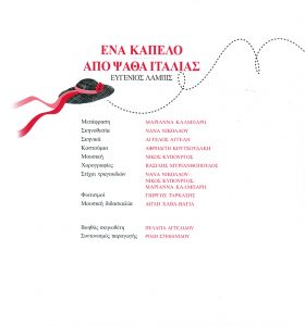 Dir. N. Nikolaou, National Theatre of Northern Greece, 2000 Η Μυρτιά (πρόχειρη ηχογράφηση χωρίς φωνή) – Ανέκδοτο https://nikoskypourgos.com/wp-content/uploads/2020/05/41.ENA-KAPELLO-Ένα-καπέλο-Mυρτιά.mp3