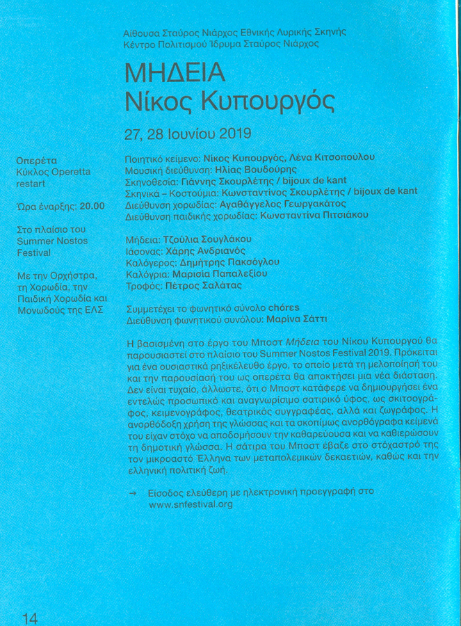 Libretto: Nikos Kypourgos – Lena Kitsopoulou