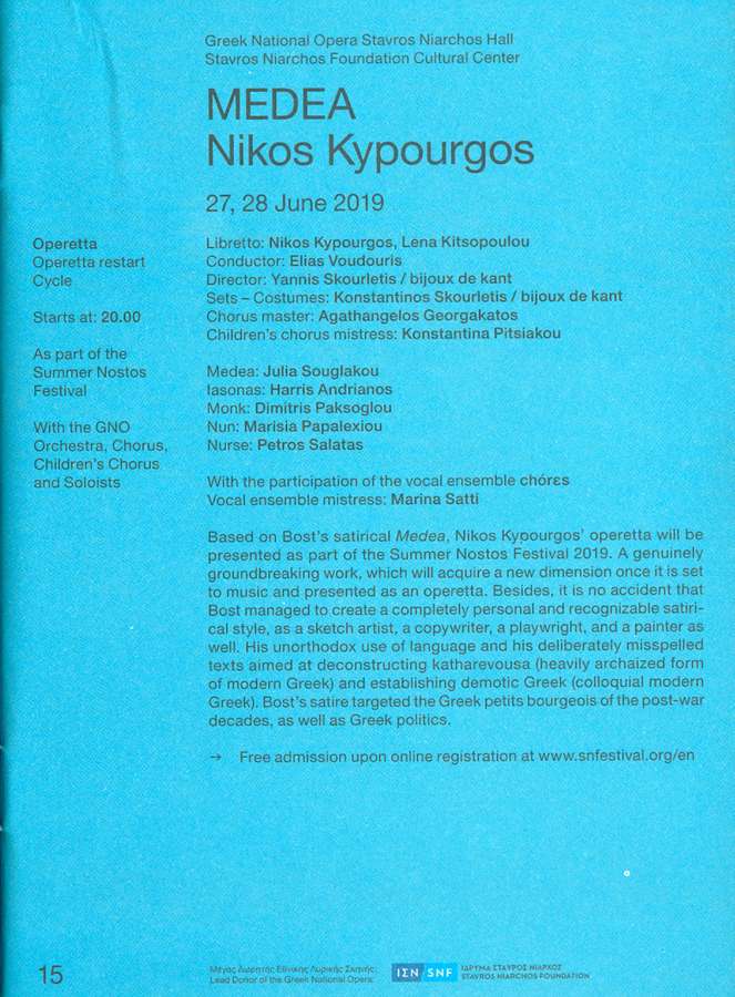 Medea by Bost, operetta for soloists, mixed chorus, children’s chorus and orchestra. 2019